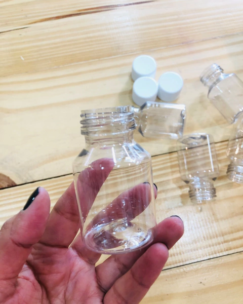 ENVASE PLASTICO 50 CC. CON TAPA NEGRA CON PRECINTO